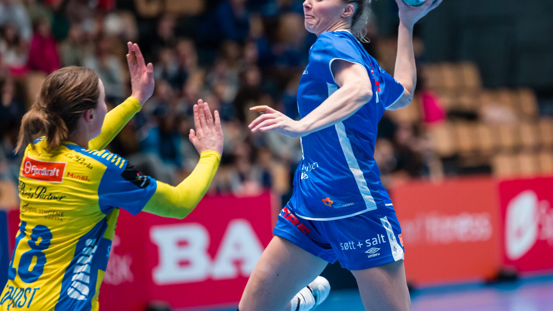 Men det ville ikke vi være med på, og vi jobbet oss tilbake i kampen. Med hhv 7 og 6 minutter igjen utlignet vi først til 24-24 og så 25-25, men stolpeskudd og tekniske feil i de påfølgende angrepene ga Storhamar muligheten til å dra i fra på nytt. Denne luken rakk vi aldri å tette, og det endte til slutt med tap 29-27. Sanne ble vår toppscorer med 8 mål, mens Emma ble kåret til vår beste spiller💙