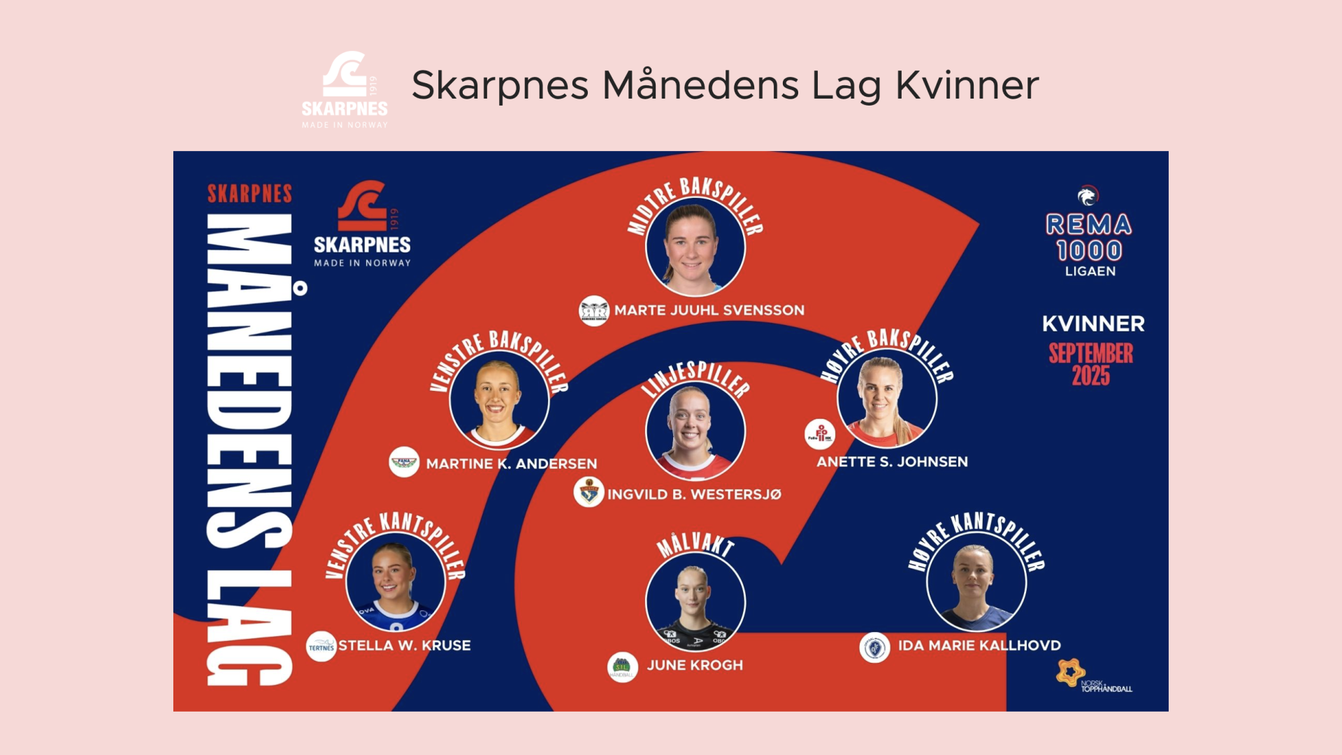Uten noe erfaring fra REMA 1000-ligaen, går Stella Waagan Kruse rett inn på Skarpnes Månedens Lag for september!