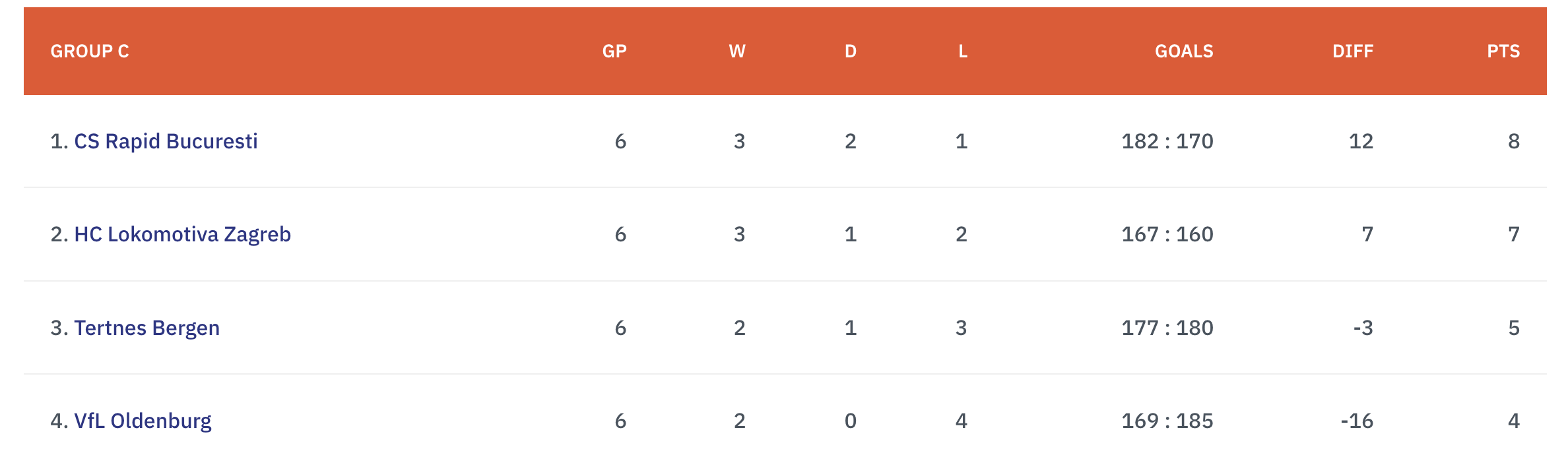 Men selv om vi selvsagt er veldig glade for å avslutte vårt European League-eventyr med seier, var det likevel med noe blandede følelser. For i den andre kampen i puljen vant Lokomotiva Zagreb over Rapid Bucuresti 29-24, og dermed er det disse to lagene som avanserer til kvartfinalen. Rapid møter danske Viborg i kvartfinalen, mens Lokomotiva skal spille kvartfinale mot Dijon, tidligere Tertnes-spiller Celine Sivertsens franske klubb.