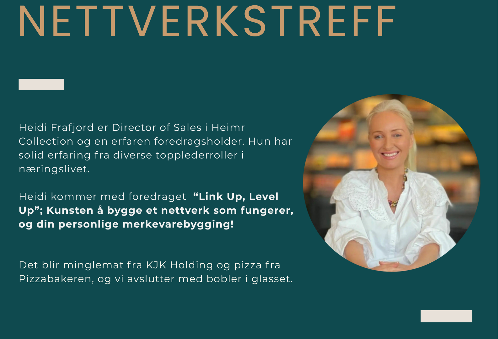 22. april inviterer Nordic Arena, Vestenfjeldske Eiendom og Tertnes til Link Up, Level Up – et nettverkstreff hvor Heidi Frafjord deler innsikt om nettverksbygging, relasjoner og personlig merkevare.